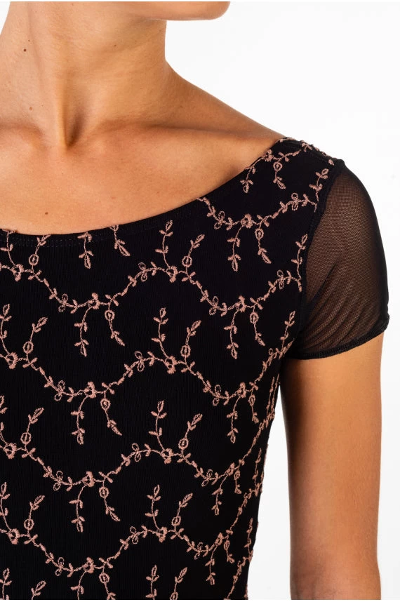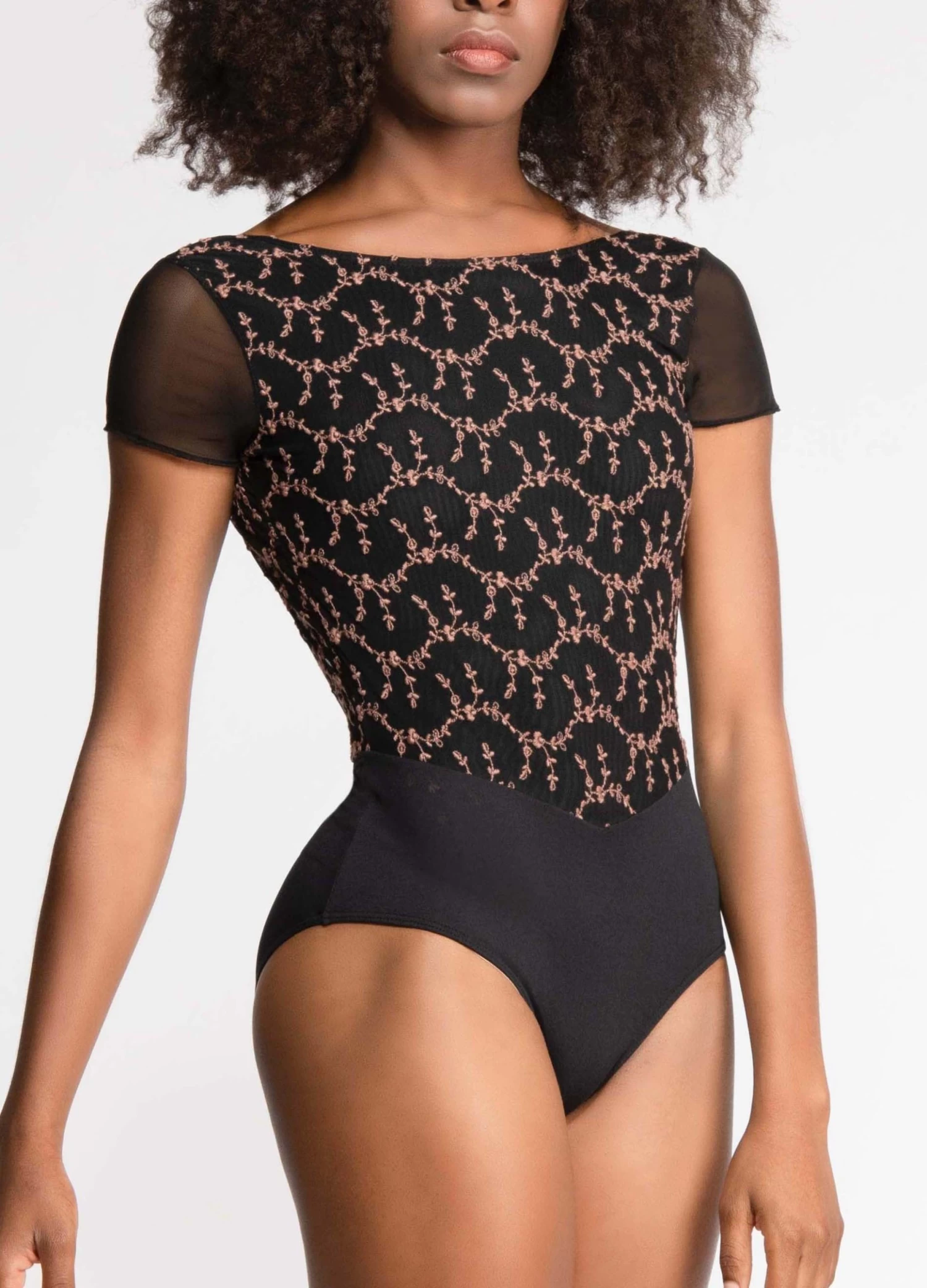 microfiber pairs perfectly with elastic embroidered four-way stretch mesh,