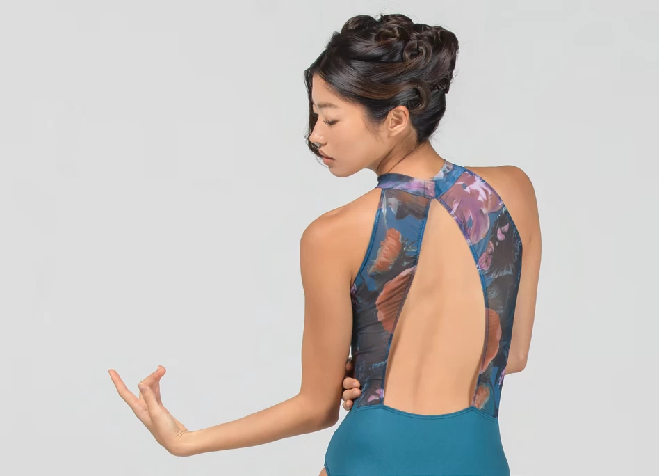 and four-way stretch mesh, available in Encre Bleu. Matching: pull-on skirt Paige available, which features a flattering high-low cut that moves elegantly with the dancer, and the high neck leotard Riley, which offers a stunning