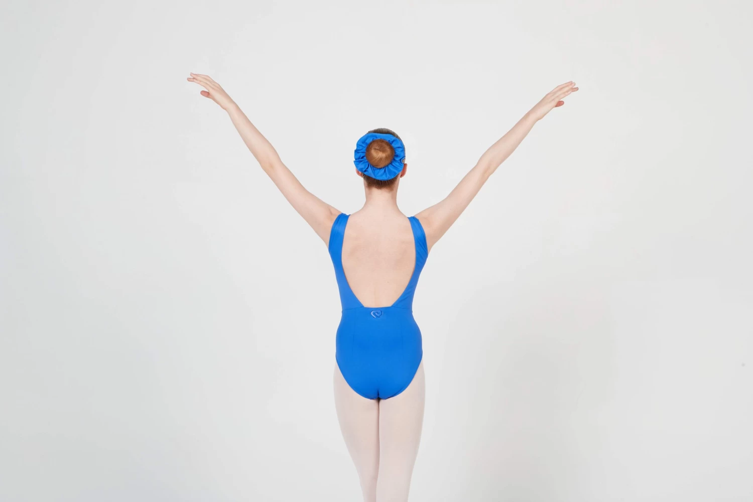 Giselle features a sophisticated high boat neck front and eye catching deep square back. Giselle is a feminine cut with elongating seams and high cut leg line. With our signature seam stitch detail, Giselle is a must-have for your leotard wardrobe. Darcy wears a Childs Extra Large leotard.