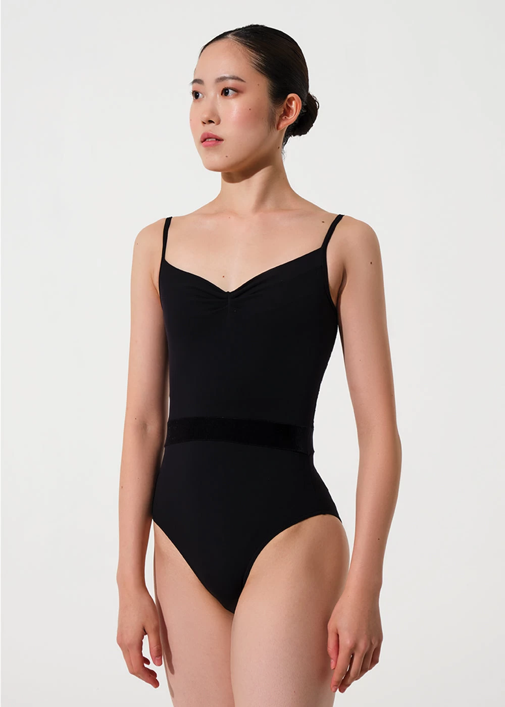 Pinch front camisole with adjustable straps. Velvet front trim and wasitline meets at the back to create a v-cut design. Adjustable hip feature to bring more versatility. Inner pockets for bra cups and fully front lined
