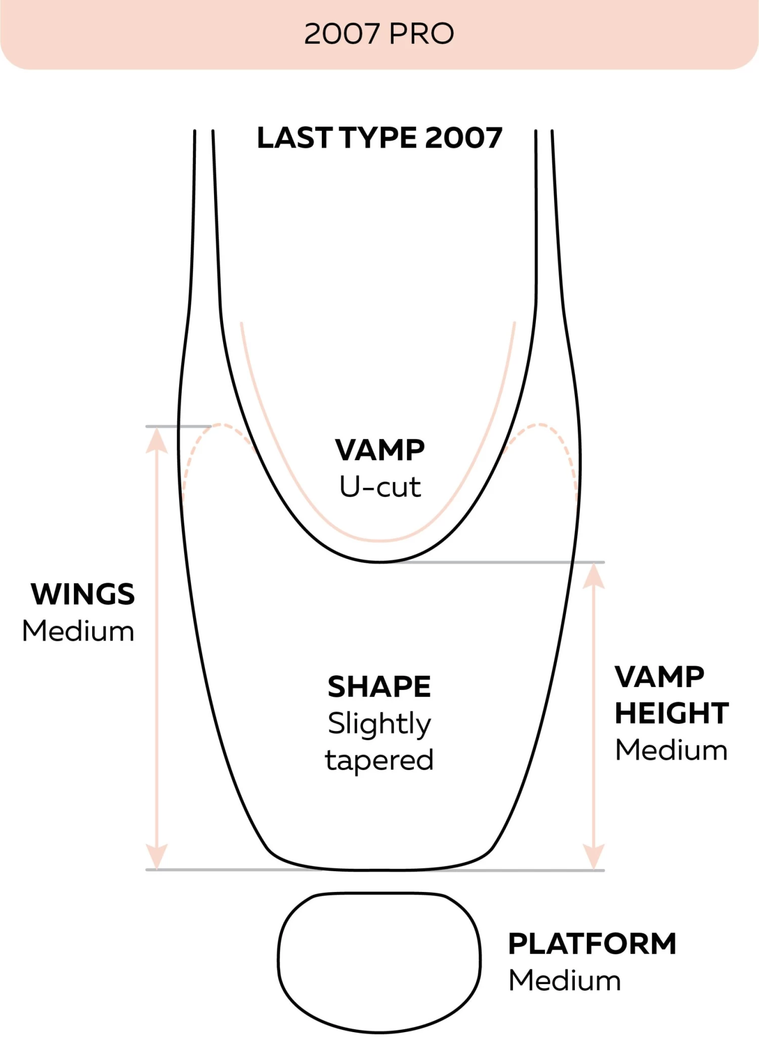These shoes have a U-shaped medium vamp , a medium platform. Pointes suit all types of feet and are recommended for dancers who like «GRISHKO 2007», but want a quieter shoe.