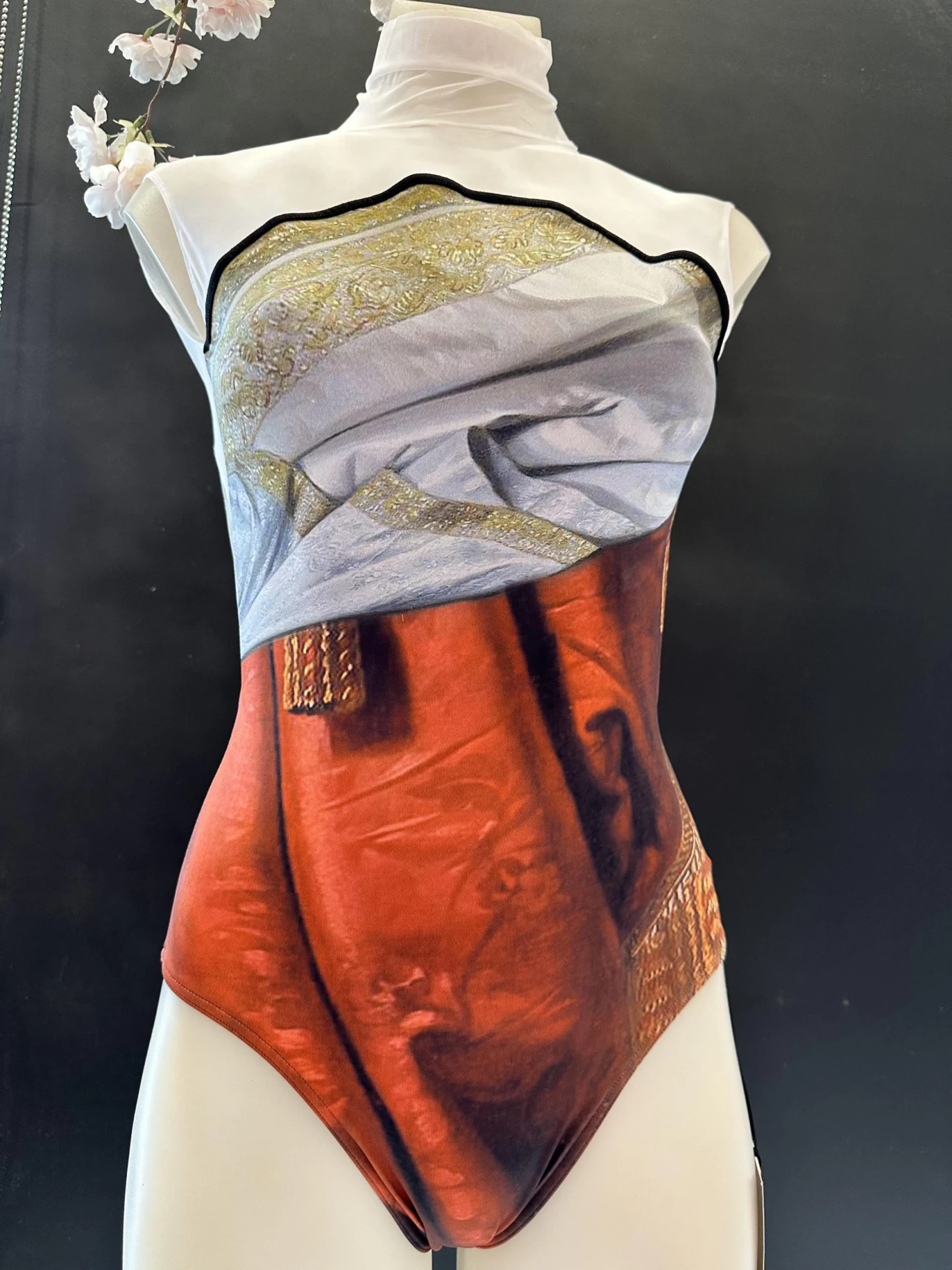 Since each leotard is transferred by hand to the fabric, the final product and colours may vary slightly from the picture. To us this is a sign of uniqueness and artisanality.