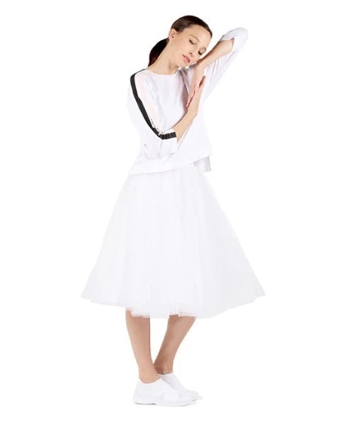 A three-quarter sleeve T-shirt where the color line on the right sleeve attracts the gaze.