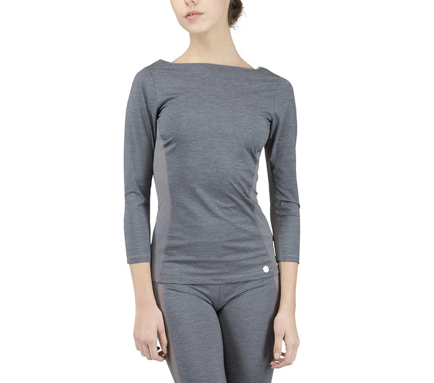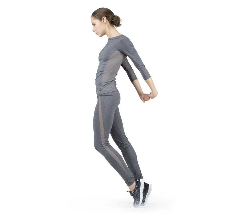 The top R0104 allows to practice a physical activity with lightness. The combination of ‘second skin’ jersey and mesh underlines the body lines while guaranteing breathability and freedom of movement. A basic garment of your wardrobes, it is both functional and elegant due to its low-necked at the back. This piece is easy to wear and to associate with the other products of the collection.