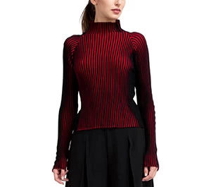 This open neckline sweater on the shoulders emphasizes the wearing of the head. Its ribbed knit stretches with the movement of the body and reveals a contrasting color, for a graphic and modern silhouette.