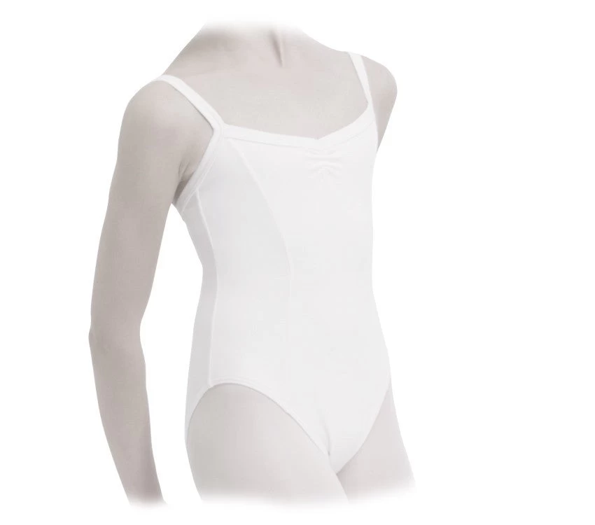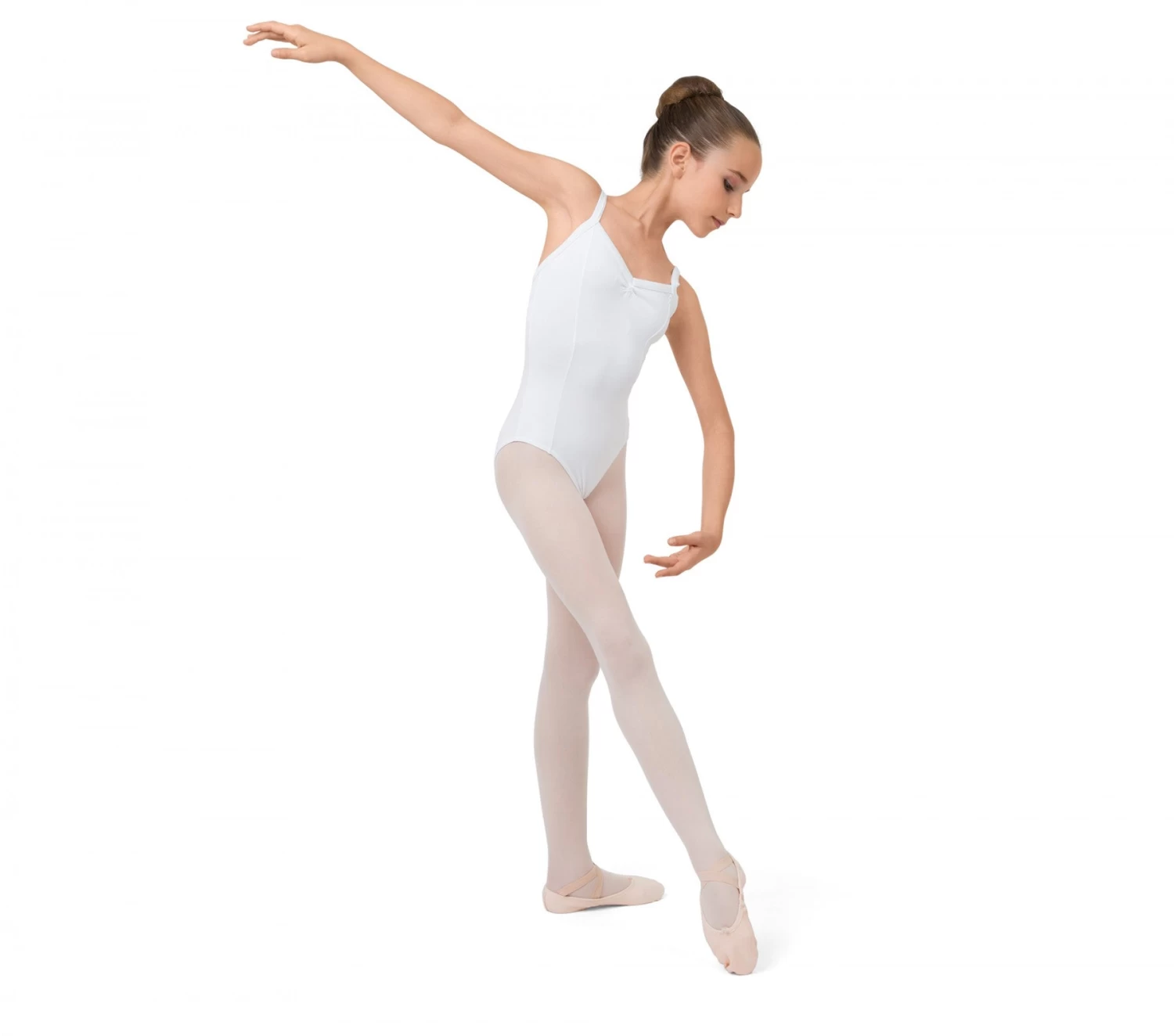 Girl’s leotard with spaghetti straps, with a wide neck trim for a good maintain. The gathered neckline is adjustable with a small inner ribbon in satin. Front and back V-neckline. The princess seams emphasize the curves of the dancer. This style is lined in the front. Available in adult size and in many colours, this is an ideal product for major schools and conservatory dancing classes. Transparent transfer of the Repetto logo on the back. Mat aspect.