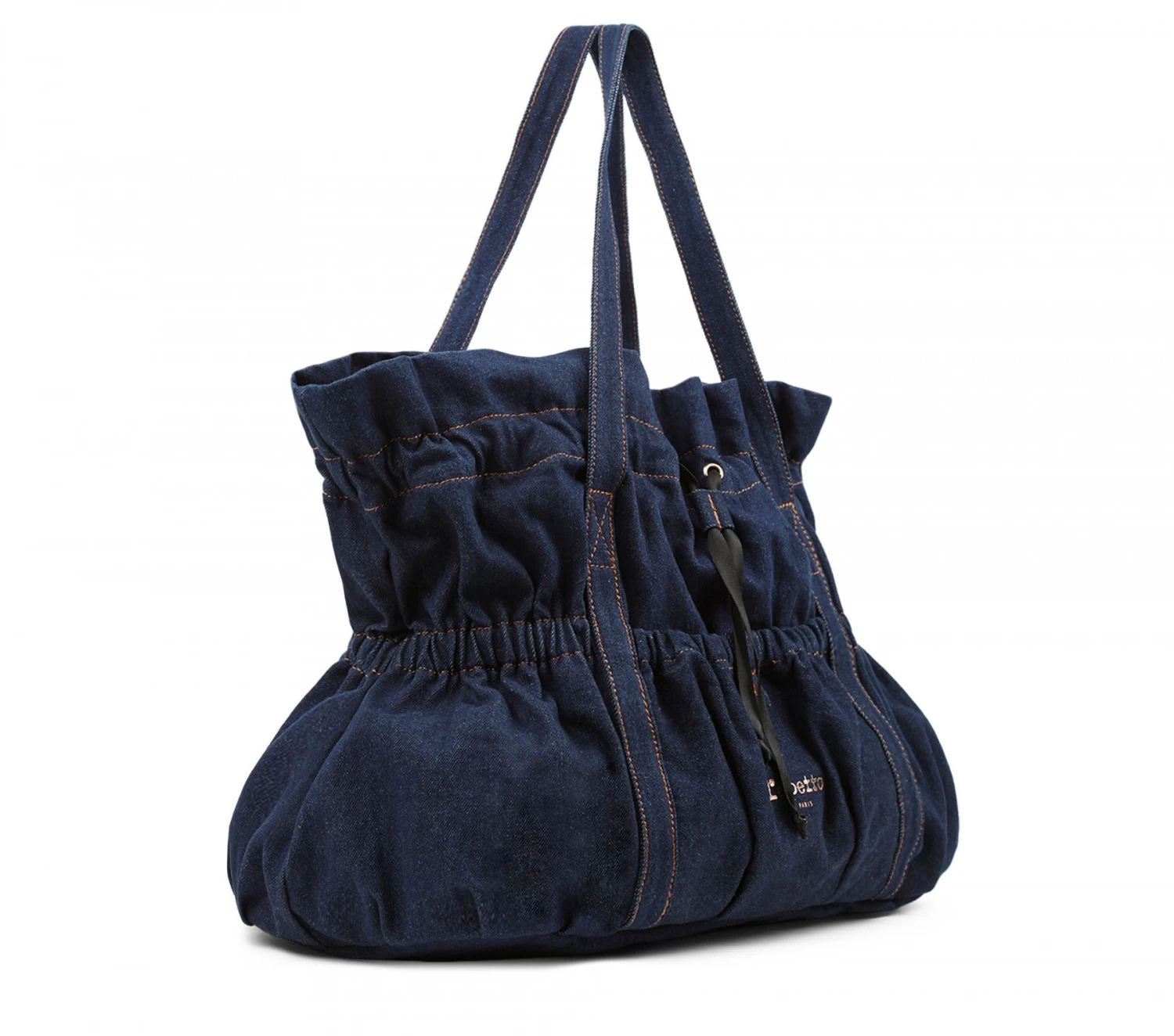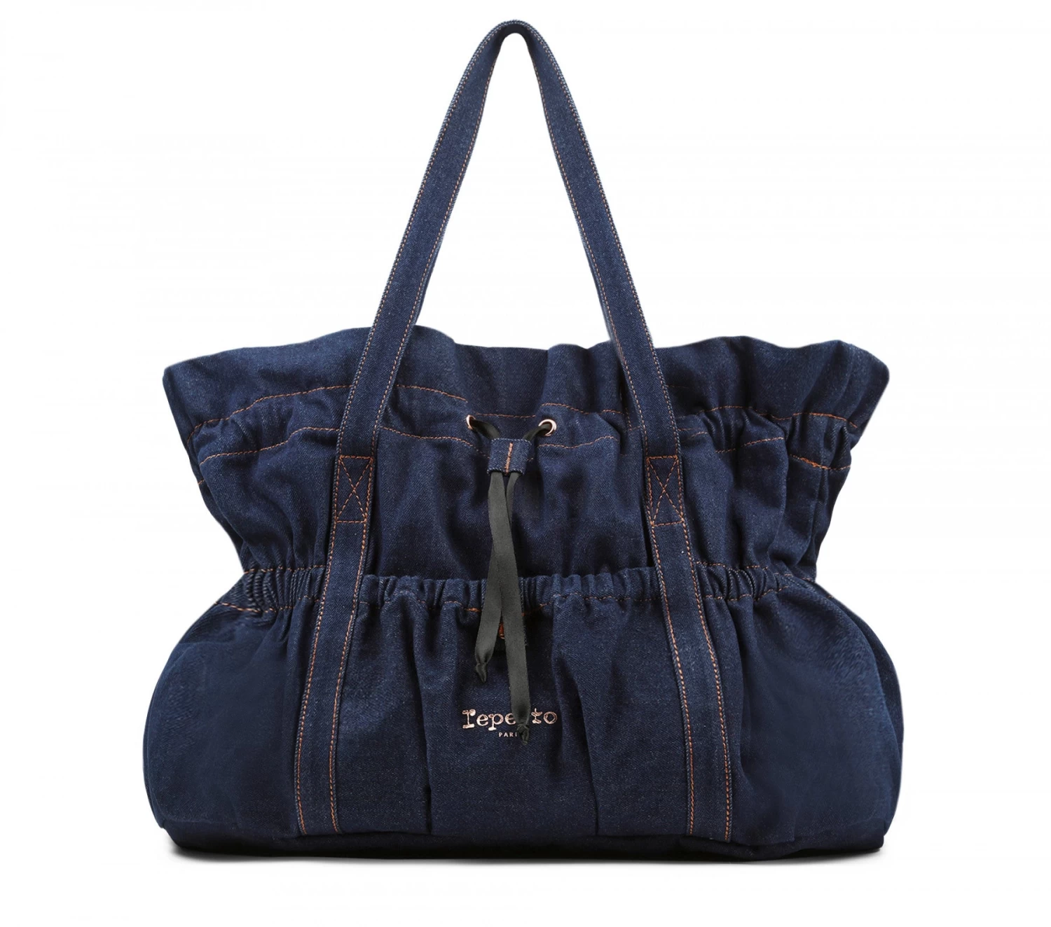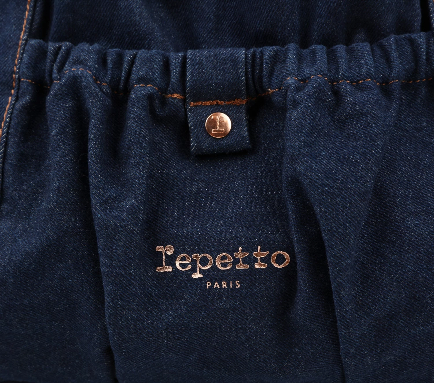 Details : Tightening tie at the top of the bag. Magnetic button closure. An outside pocket. Rose gold Repetto logo. Unlined.