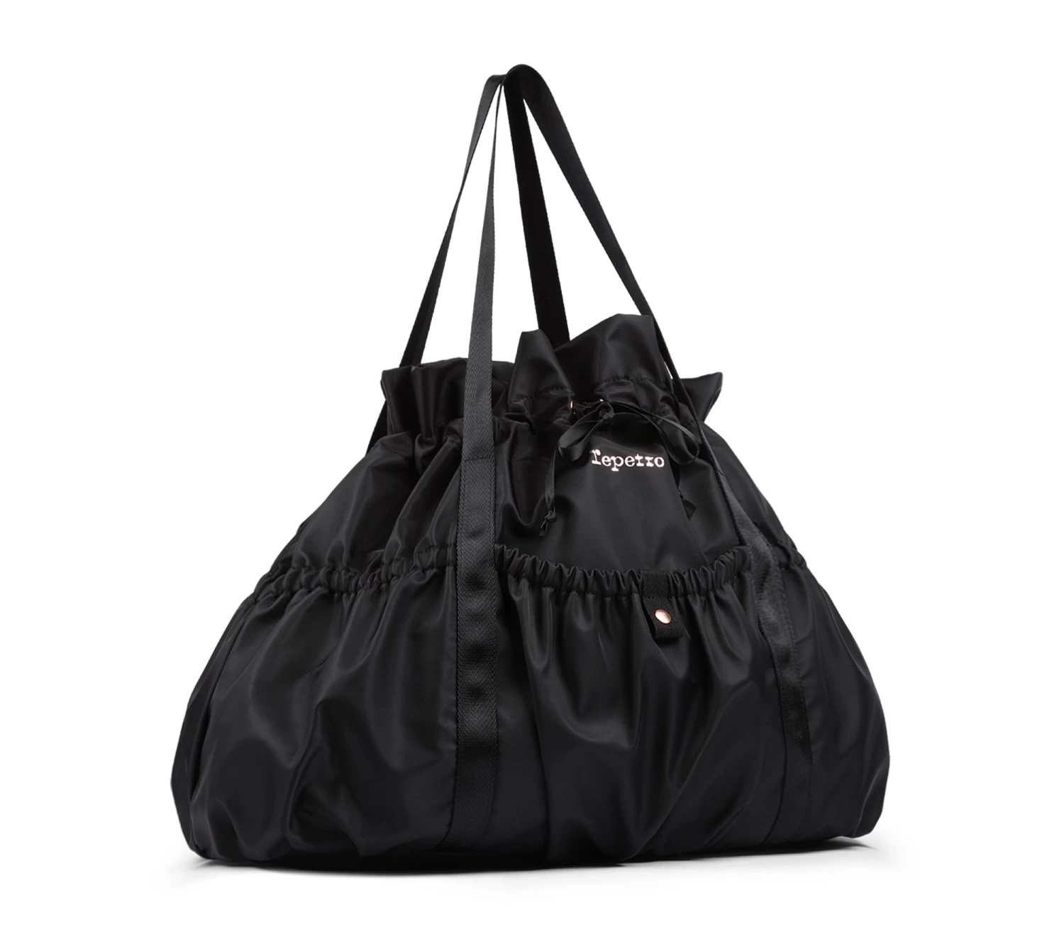 Details : satin ribbon closure to be tightened. Two exterior pockets. Rose gold Repetto logo. Unlined