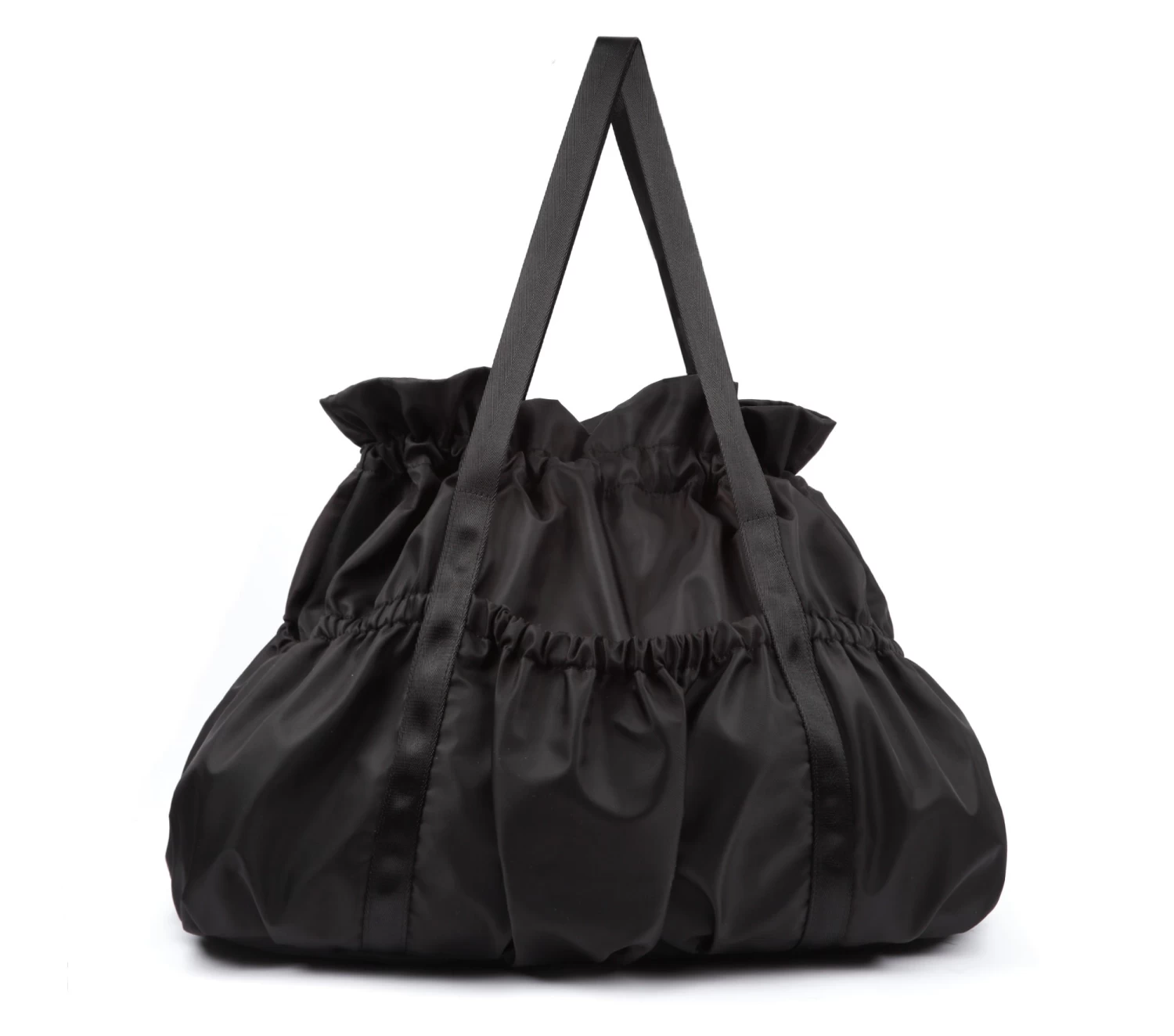This large bag is the ideal accessory for the woman who wants to carry all her belongings from morning to night, without having to change bags. The tightening link at the top recalls the identity of the House in a subtle and delicate way. The nylon material offers elegance and flexibility.