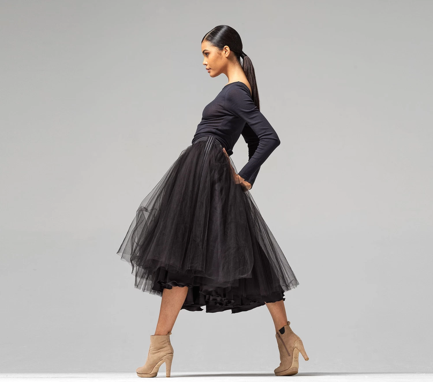 Inspired by the iconic Tutu Repetto, this skirt is the urban version of the dance skirt. Composed of superimposed layers of fine and fluid tulle, it suggests movements for a light and modern silhouette.