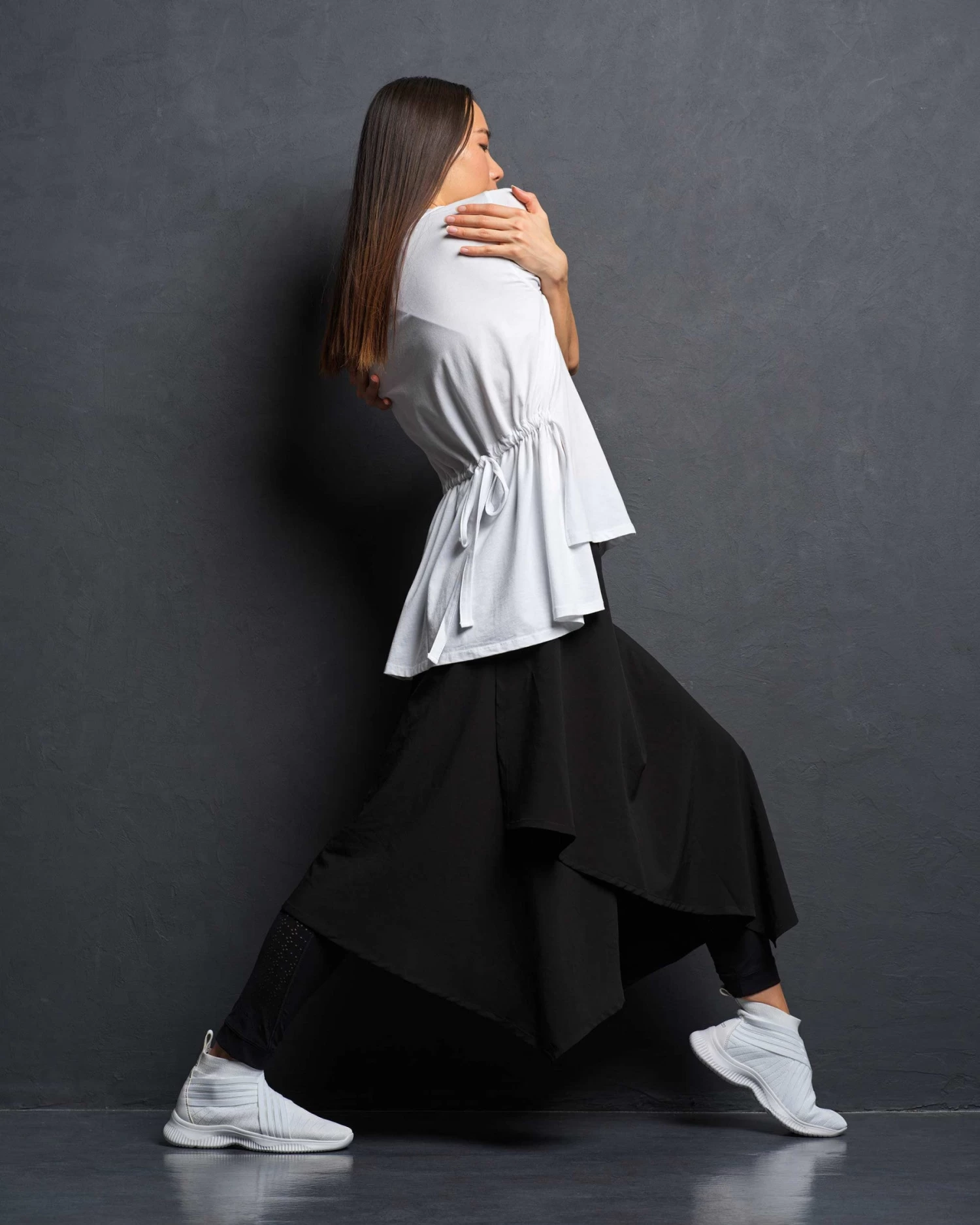 This t-shirt is distinguished by its adjustment link for a pleated effect on the back. Its long cut and longer yoke on the back reinforce the slender character of the silhouette. The softness and fluidity of the mesh ensure optimal comfort.