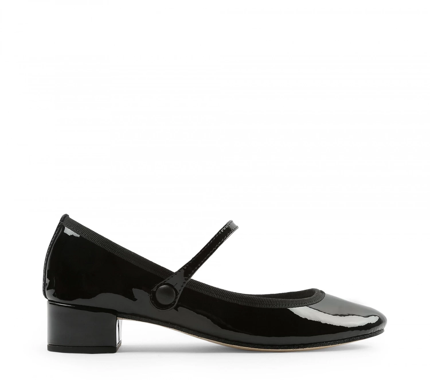 Details : Mary Janes with grosgrain lined heel. White sheepskin insole. Ecru canvas lining. Leather covered heel. Croupon sole.