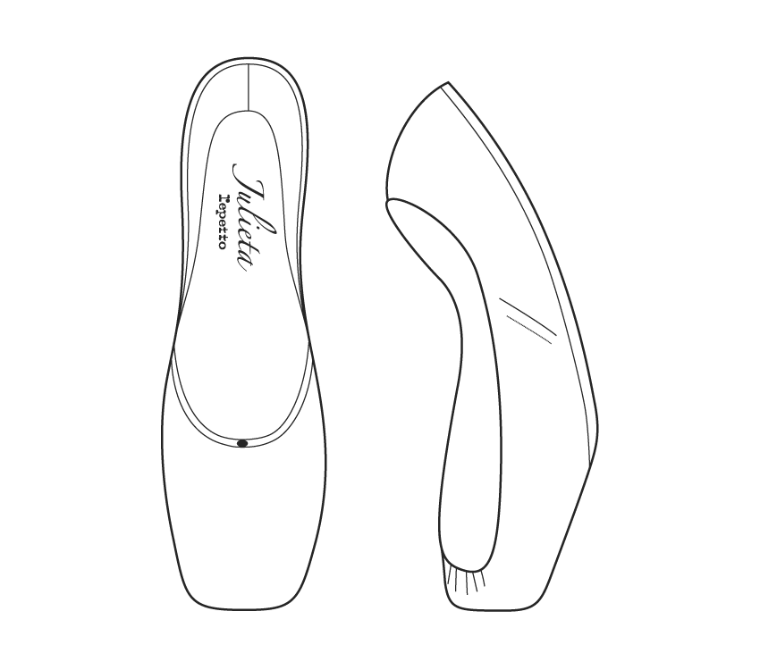 The Julieta – wide box – is a beginner tip for young girls in their first years of peak work. Its extra-supple sole and low upper make it easy to climb on the toe and provide great ease in a half-point. Its shape is specially designed with sides and a heel more wraparound for better support of the foot flat and tip.