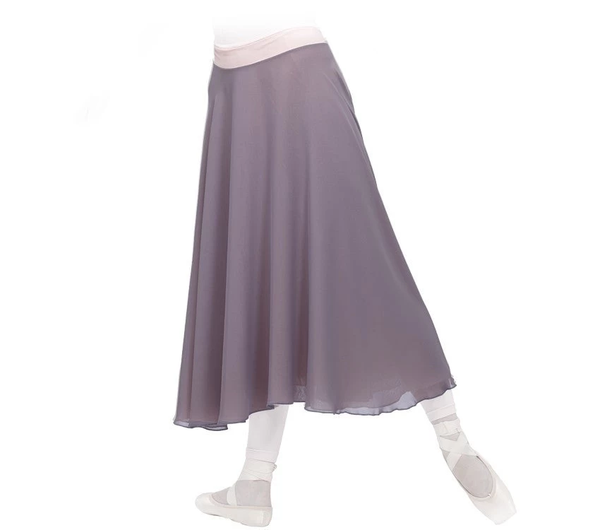 This rehearsal chiffon skirt is perfect for the studio and stage work. Plain on a side with a black basic colour, or Taupe Rose two-coloured reversible, to create the silhouette of its choice. Its tightening lace ties up in the waist allows to adjust it depending on the need. Transparent Repetto logo transfer on the front.