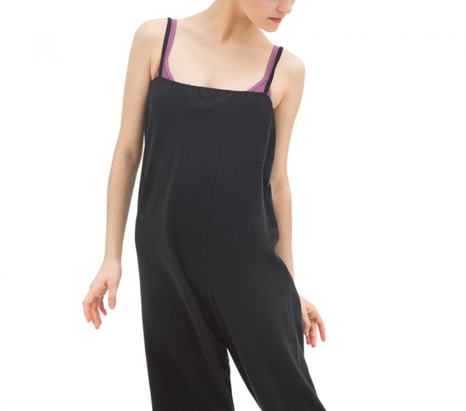 Wide black jumpsuit, thin straps. Intended for warming up. The warm-up is an essential step for all the dancers, whatever their level in dance, our warm-up articles are of a great comfort and offer an excellent thermal protection. Embetto logo embroidered on the back, tone on tone.