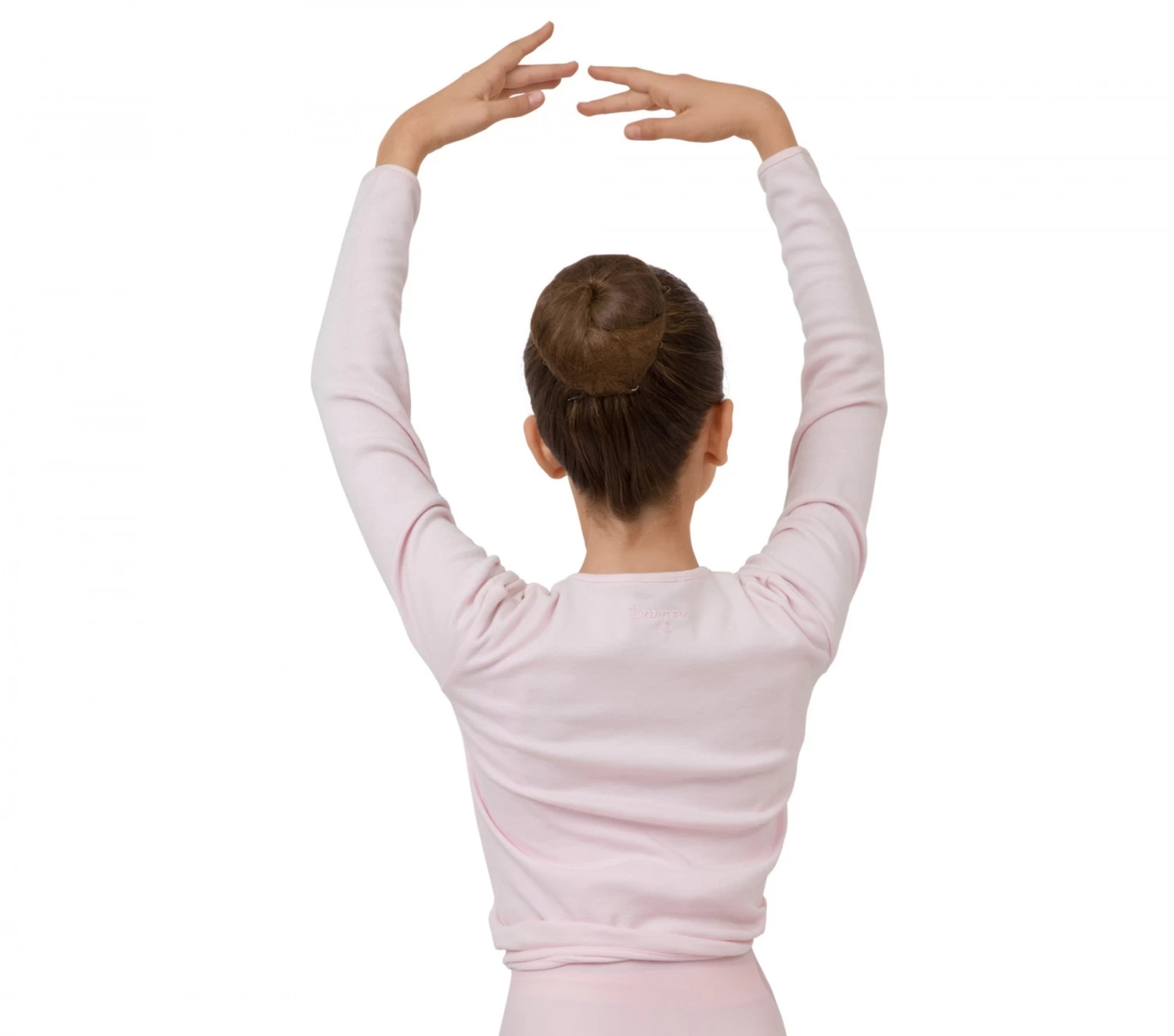Tendresse pink wrap with long sleeves for little girl. Intended for warming up. Warming up is an essential step for all dancers, whatever their level in dance, our warm-up items are very comfortable and offer excellent thermal protection. Ties around the waist, V neckline. Repetto logo embroidered at the bottom of the neck.