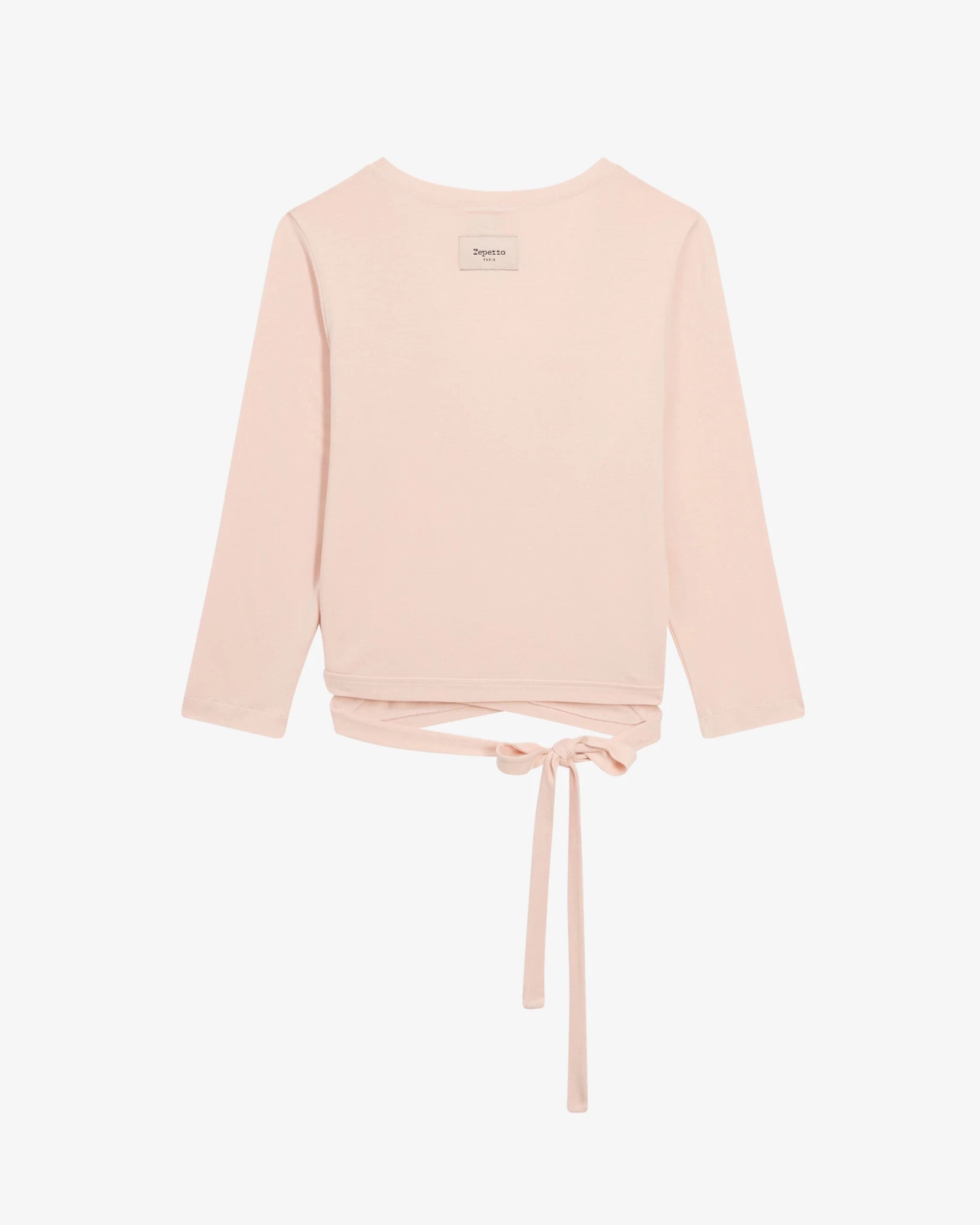 Details : Wrap in viscose jersey EcoVero. V neckline. Ties to tie at the waist. Transfer R logo on the side. Repetto label on the back.