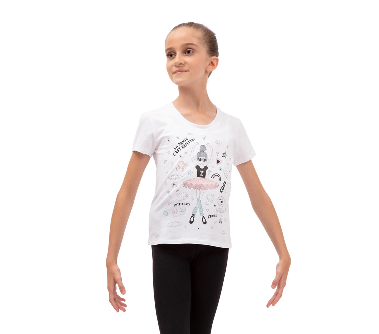 This t-shirt, through its graphics, makes us discover the creator of the House, Rose Repetto. Rose is a funny, bubbly, daring, sometimes awkward girl, who likes to have fun, and above all, to dance. She also dreams of becoming a dancer. This motif is also available on a tote bag.
